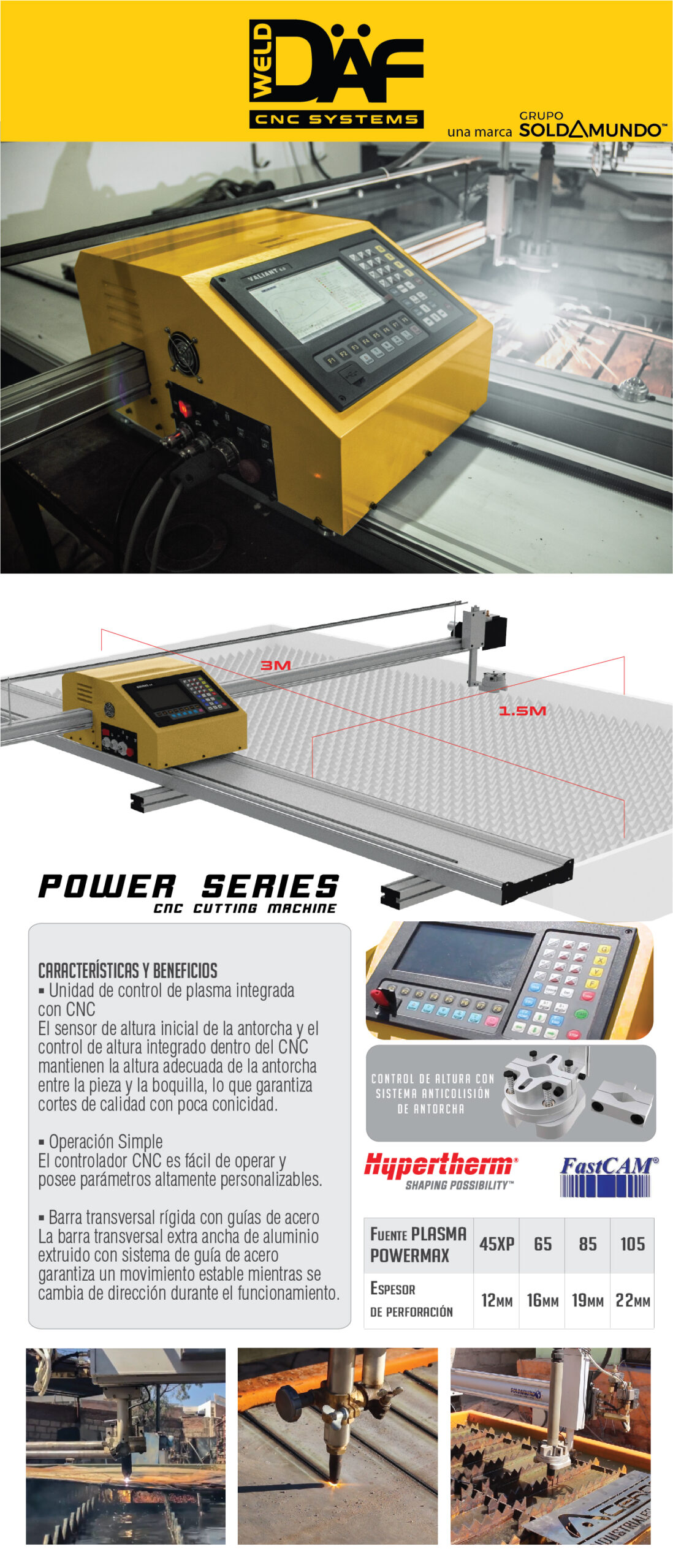 | Espesor de perforación | 12 mm, 16 mm, 19 mm, 22 mm |